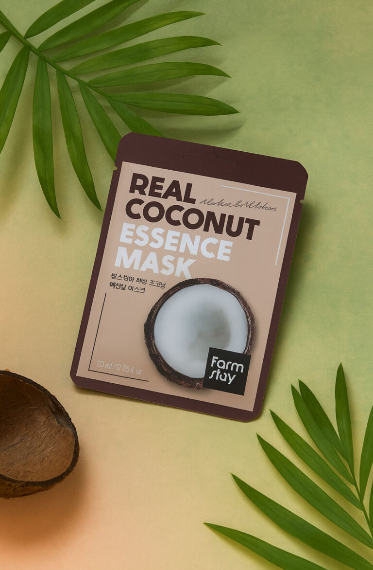 • Farmstay Real Coconut Essence Mask je výživná plátenková maska vytvorená pre suchú, mdlú alebo dehydrovanú pleť, ktorá potrebuje okamžitú dávku hebkosti a elasticity.