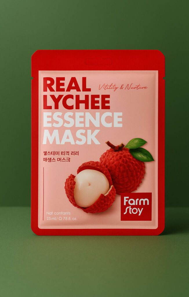 Farmstay Real Lychee Essence Mask je plátenková maska s extraktom z liči, ktorá okamžite dodáva pleti sviežosť, jas a „healthy glow“.