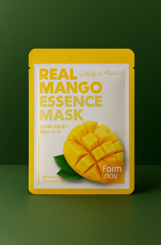 Farmstay Real Mango Essence Mask je textilná maska s extraktom z manga, ktorá okamžite dodáva pleti dávku výživy, hydratácie a zdravého tropického jasu.