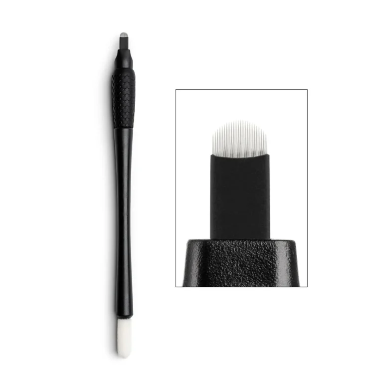 Ergonomická, protišmyková rukoväť poskytuje maximálne pohodlie a presnú kontrolu počas celého zákroku. Čepeľ U24, vyrobená z ultrajemných ihiel s priemerom 0,16 mm z vysoko kvalitnej nehrdzavejúcej ocele U304, zaručuje výnimočnú presnosť a odolnosť. Mikroaplikátor bez vlákien zaisťuje čistú a presnú aplikáciu pigmentu pre dokonalé výsledky.